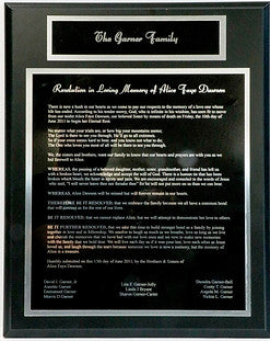 The economy plaque is made of compressed PDF and colored to wood grain or black.